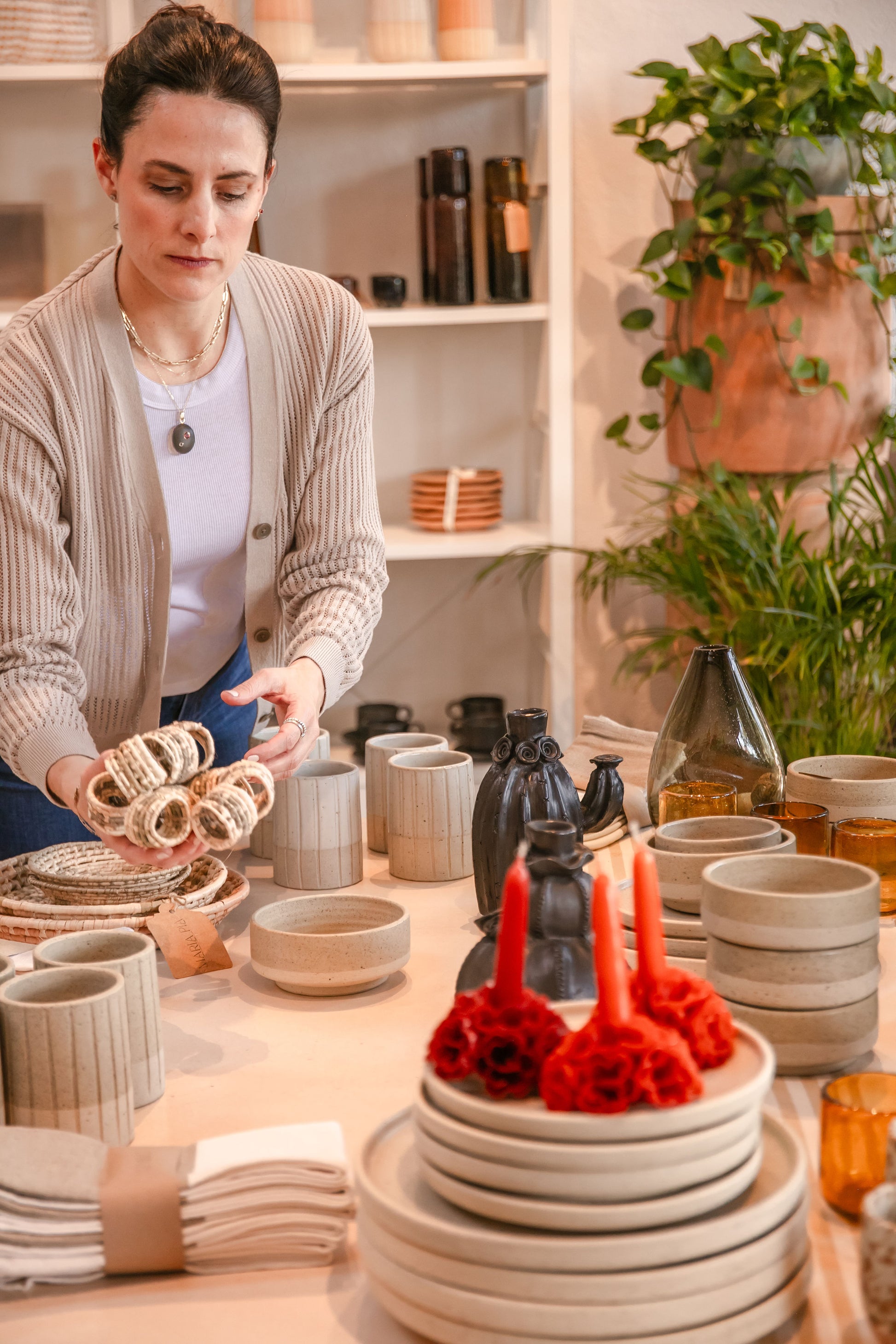 Set of 4 handcrafted woven napkin rings in natural seagrass with rustic texture, perfect for elegant table settings or bohemian dining décor