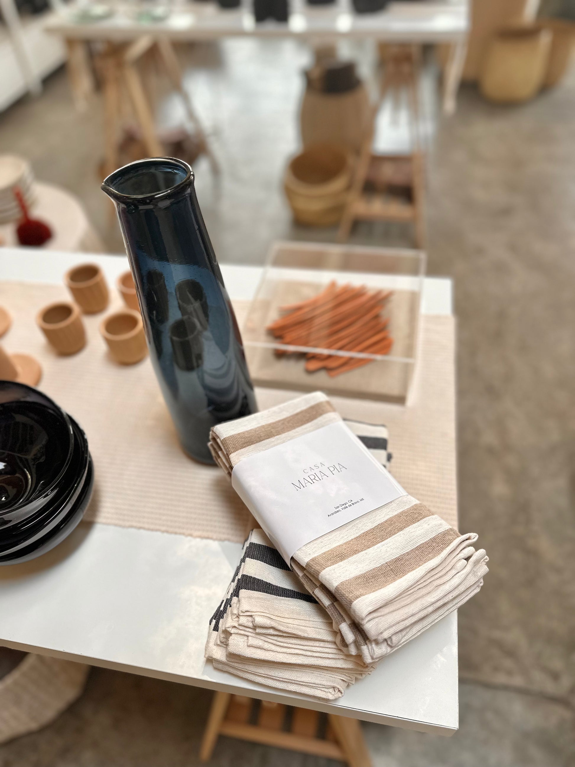 Set of 4 handwoven off-white napkins with fringe edges, perfect for casual dining style